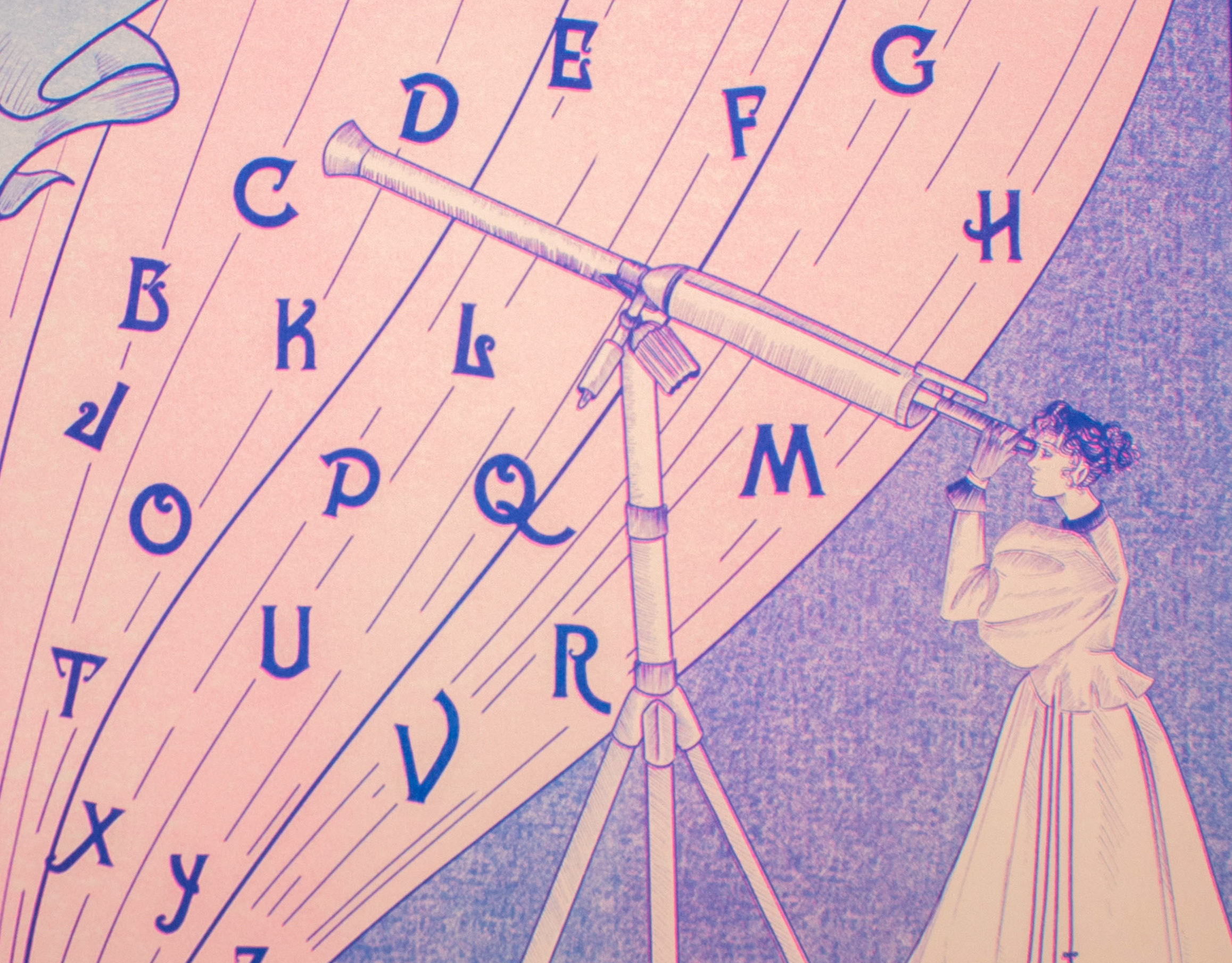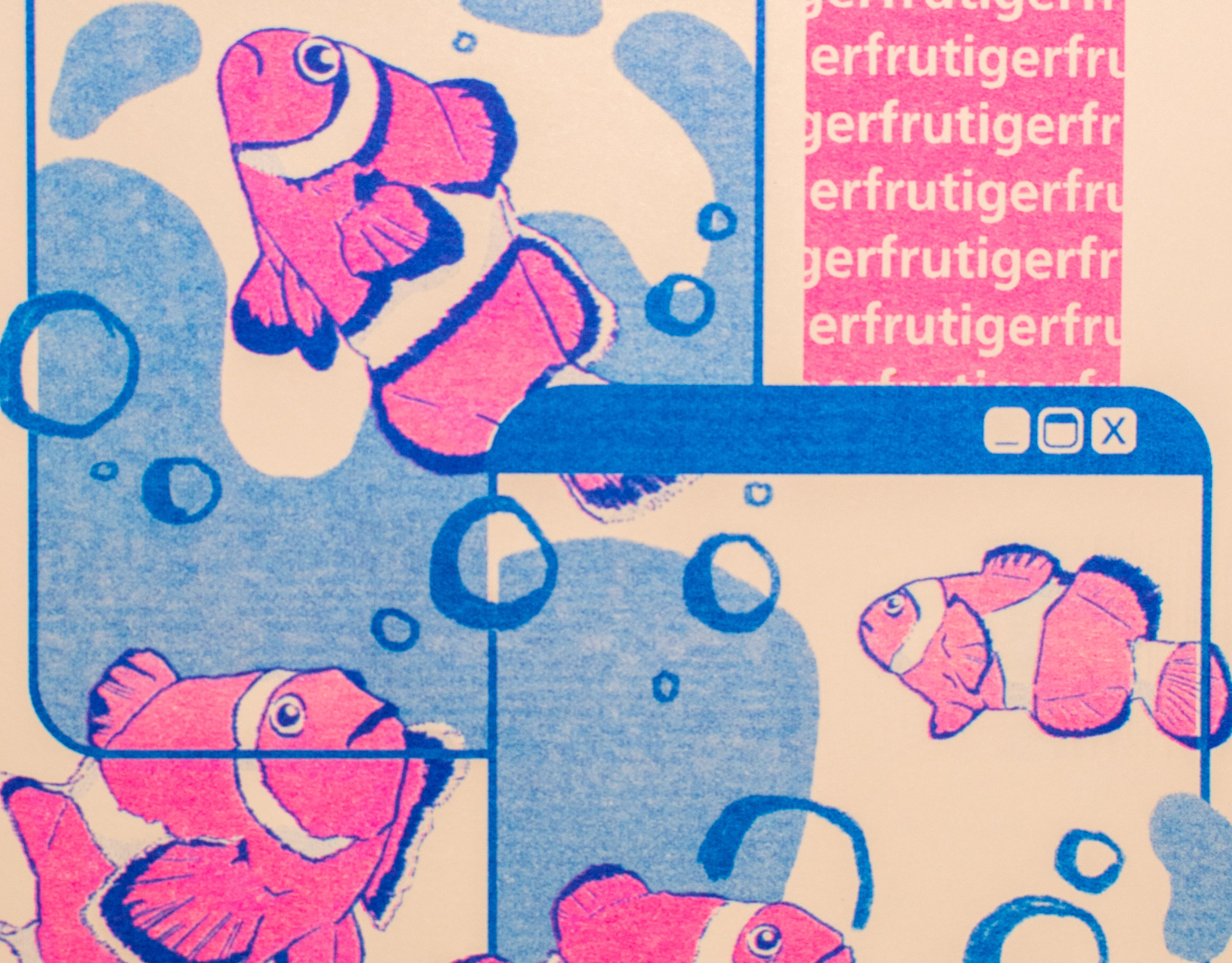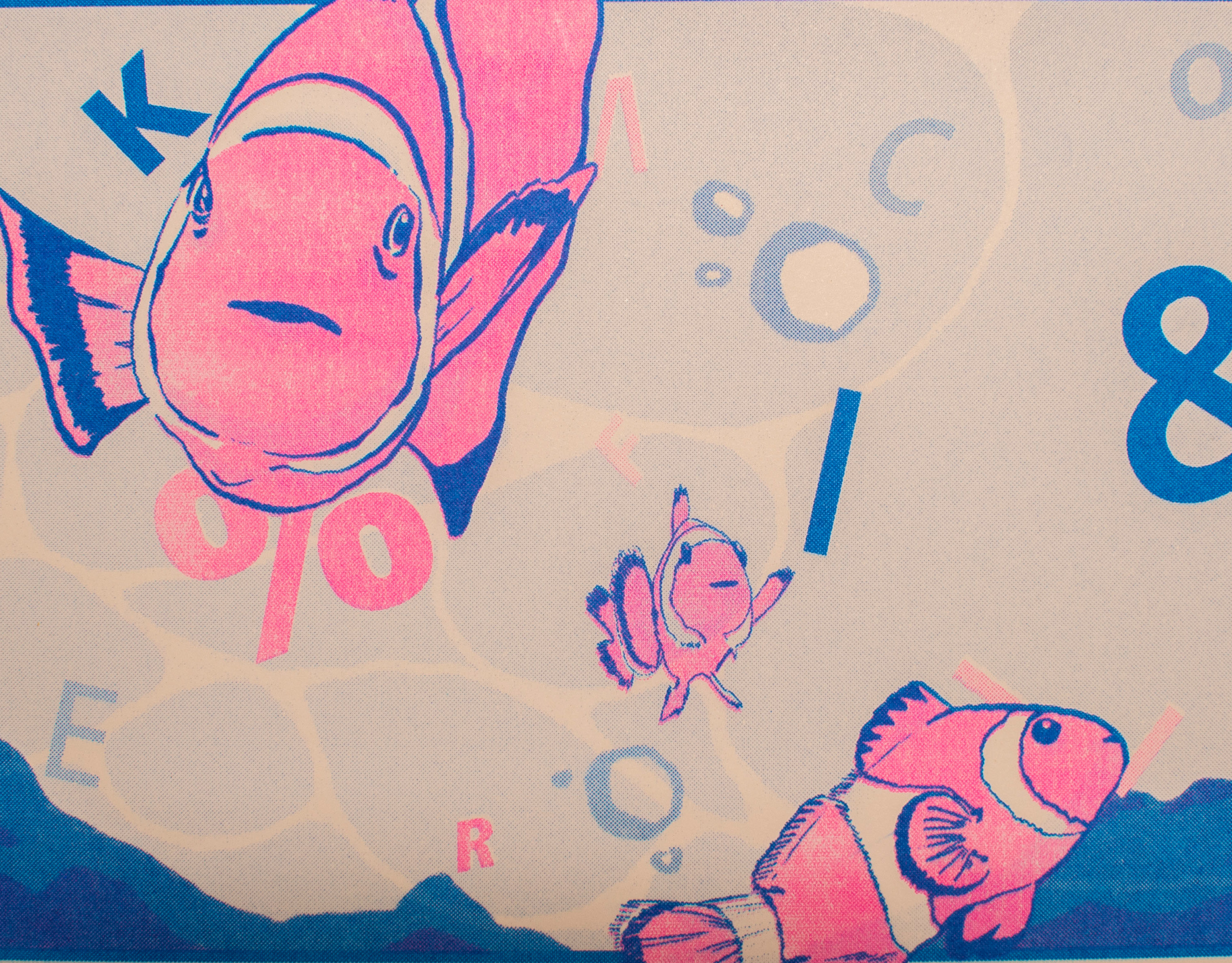 2 color riso print (fluo pink, blue)